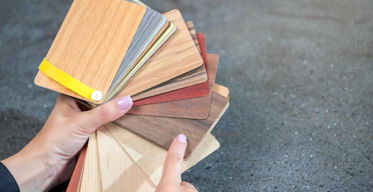 Stack of wooden samples showcasing different textures and finishes
